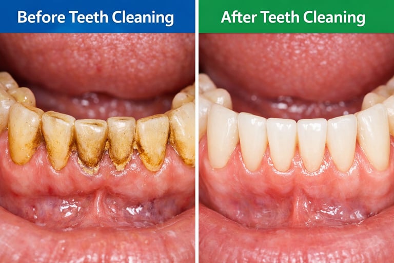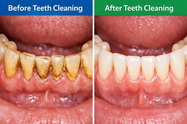 Professional dental cleaning to remove plaque, tartar, and stains for a healthier, brighter smile.